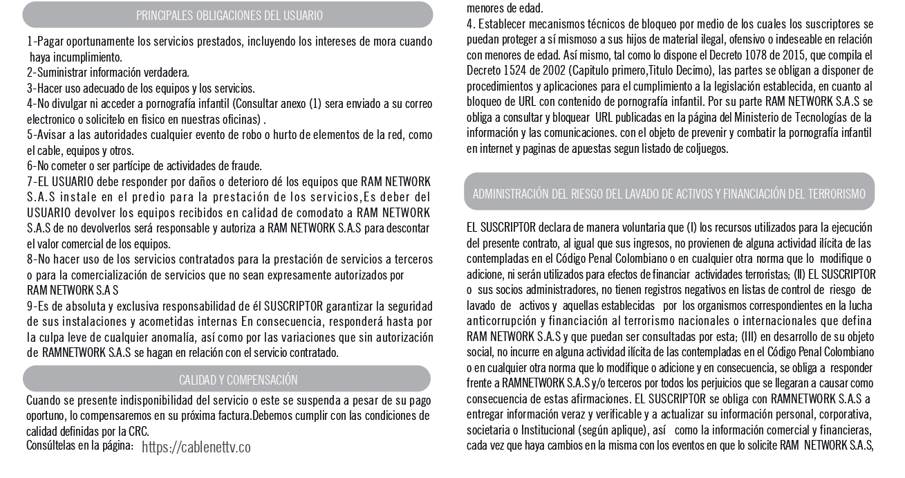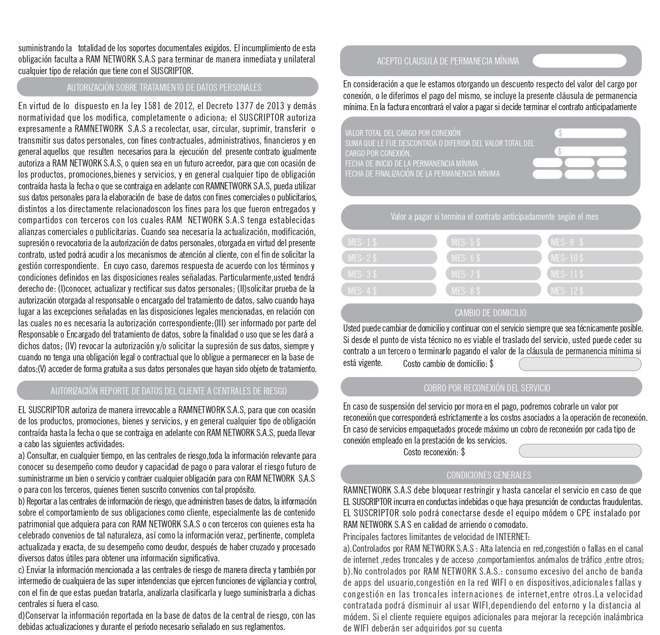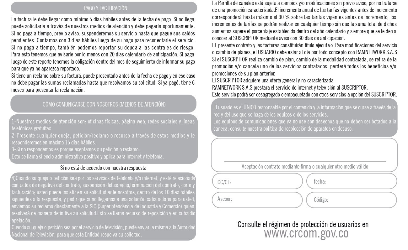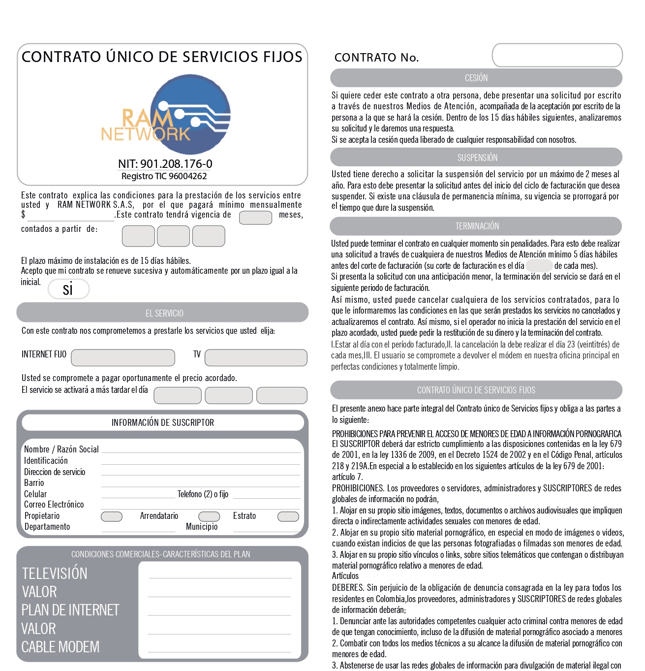 A continuación, puede visualizar el formato de contrato de prestación de servicio que realiza el usuario y RAMNETWORK S.A.S.